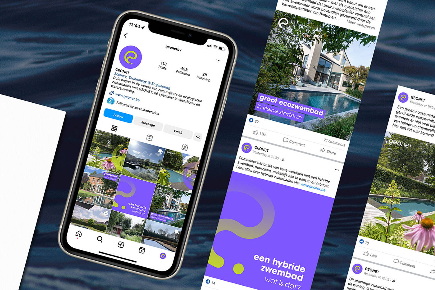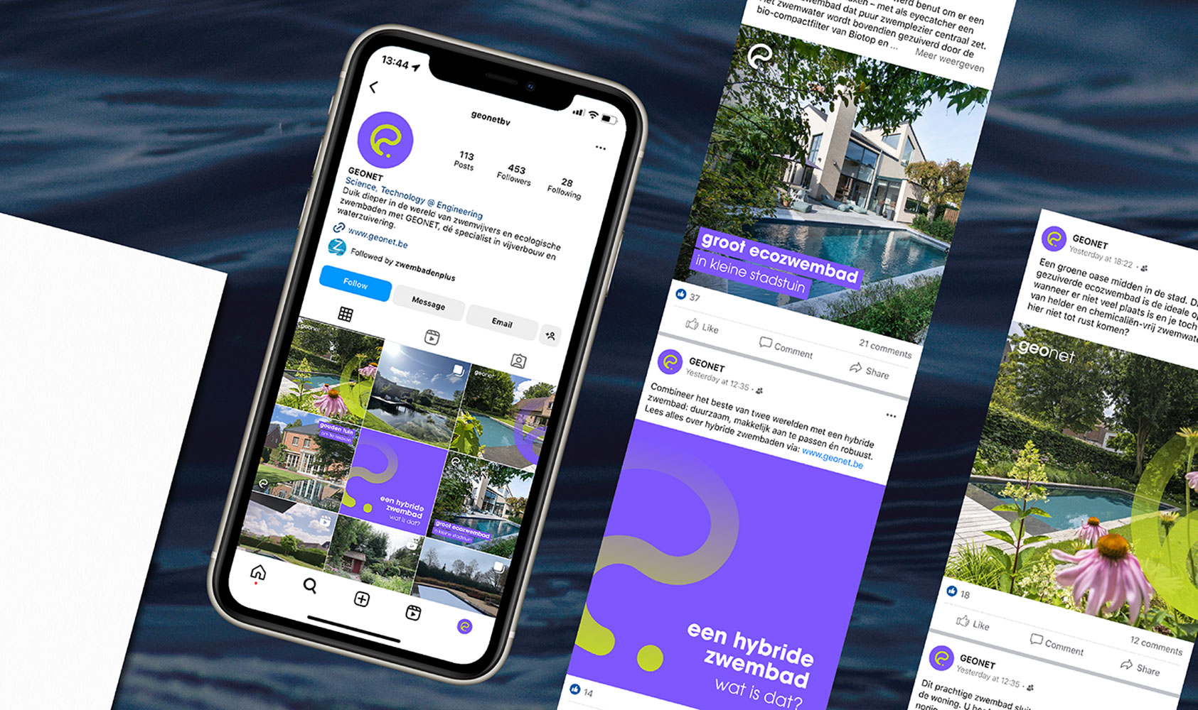In samenwerking met het interne team ontwierp Whyzzle eveneens de sociale mediastrategie, met pakkende visuals, contentformats en sturing op doelgerichte topics zoals werkbegeleiding bij zwemvijverbouw of waterzuivering voor openbare domeinen. Zo versterkt GEONET online haar positie als expert én partner voor projecten die inzetten op helder waterkwaliteit.